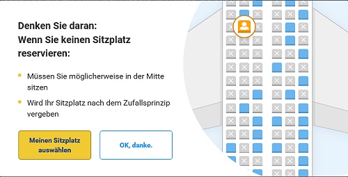 Bei Standardbuchungen können im nächsten Buchungsschritt gegen Gebühr Sitzplätze ausgesucht werden, mit der Drohung in die Mitte einer Dreierreihe gesetzt zu werden wenn man es nicht macht.